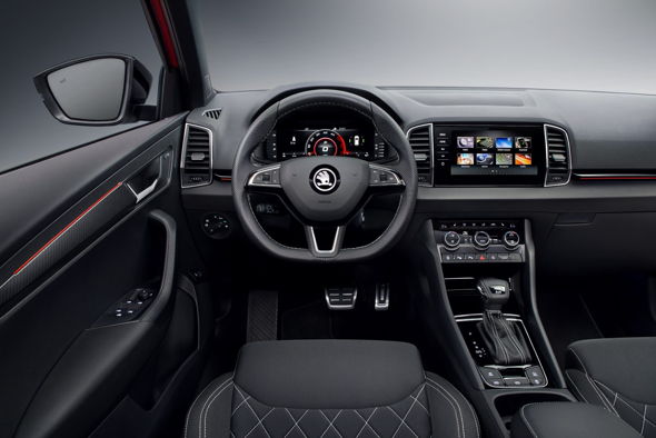 В качестве опции для ŠKODA KAROQ SPORTLINE предлагается цифровая приборная панель. Для версии SPORTLINE она имеет дополнительный пятый режим работы, который отображает тахометр и скорость по центру экрана. Благодаря модулю LTE и встроенной точке доступа Wi-Fi пассажиры ŠKODA KAROQ всегда остаются онлайн. Динамические характеристики можно сконфигурировать благодаря системе выбора режима движения Driving Mode Select, а система стабилизации ESC имеет два алгоритма работы.